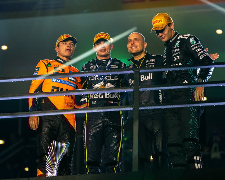 Winner: Max Verstappen (Red Bull Racing) dominated the race to take his second consecutive victory in Las Vegas. Podium Finishers: 1st: Max Verstappen (Red Bull Racing) 2nd: George Russell (Mercedes) 3rd: Kimi Antonelli (Mercedes) — secured his first F1 podium after starting P17 Photos By Angel Almada for : LATimes Español
